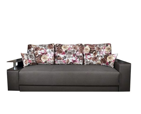 Диван оснащен механизмом трансформации в спальное место — книжка. Габариты спального места 1200 х 1920 мм. В основе изделия находится прослойка пенополиуретана и пружинный блок.